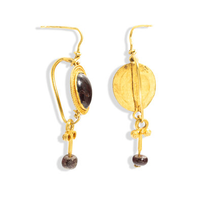 A Pair of Greek Gold and Garnet Earrings