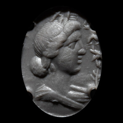 A Roman Red Jasper Ring Stone with a Female Portrait Head and Inscription