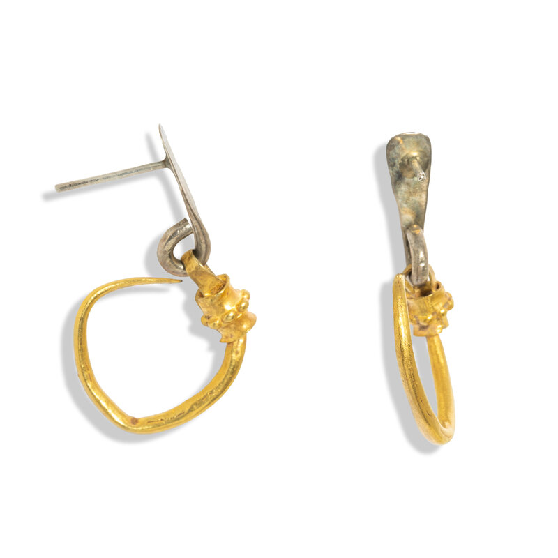 Height with mounts 3.2 cm (1 1/4 inches); High karat gold; 3.7 grams.