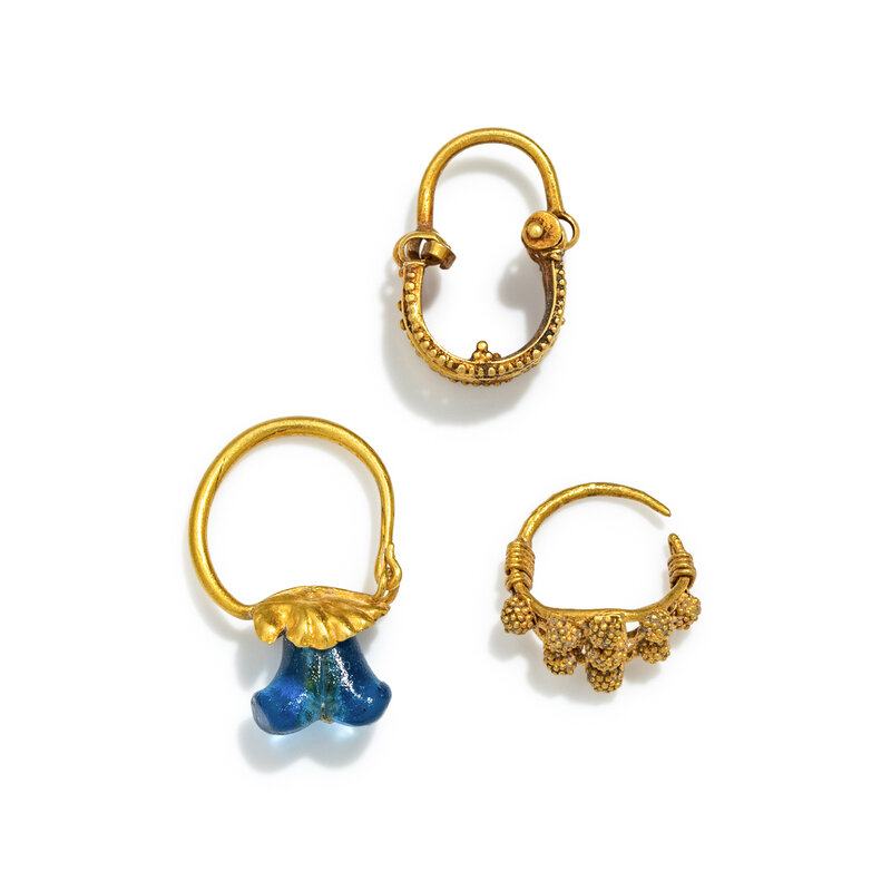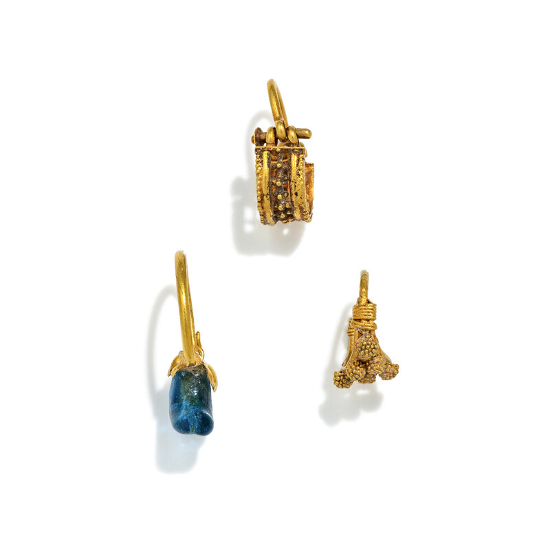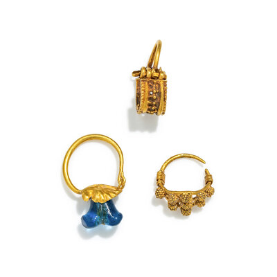 Three Roman Gold and Glass Earrings