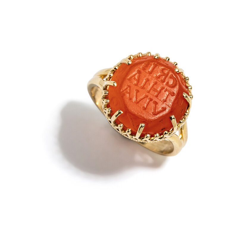 Height 2.5 cm (1 inch); Ring size 8; 14 karat gold; 5.89 grams.