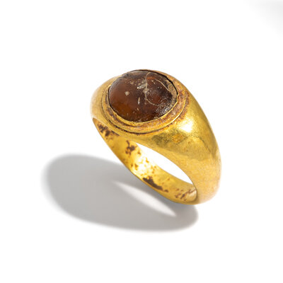 A Roman Gold and Glass Finger Ring