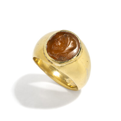 A Roman Carnelian Ring Stone with the Emperor Hadrian as Pontifex Maximus