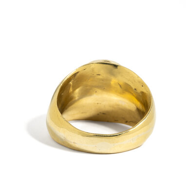 Height 2.6 cm (1 inch); Ring size 8 1/4; High karat gold; 15.74 grams.