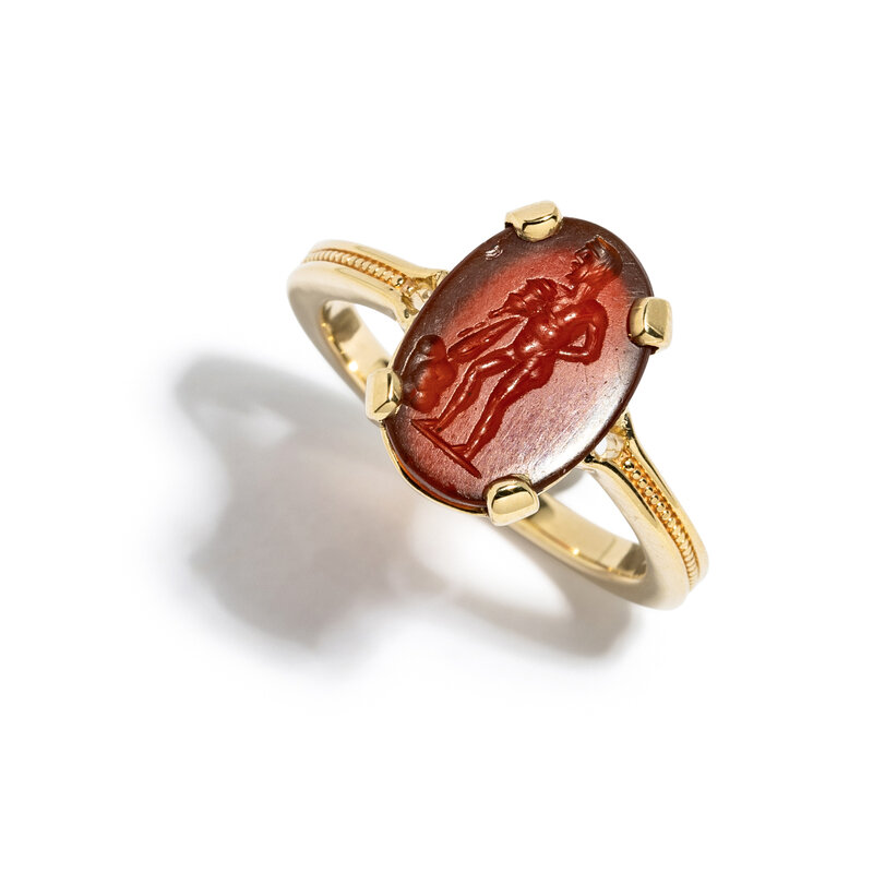 A Gold and Carnelian Finger Ring with the Demigod Hercules