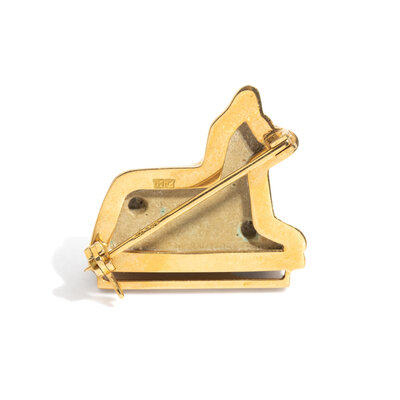Width of brooch 2.9 cm (1 1/8 inches); 14 karat gold; 13 grams.