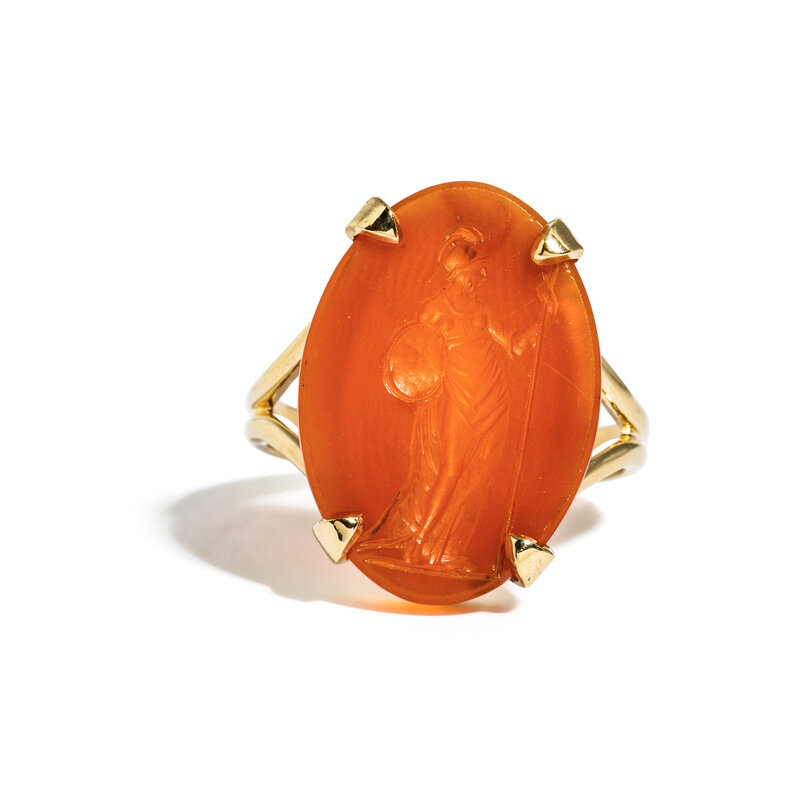 A Roman Carnelian Ring Stone with the Goddess Athena