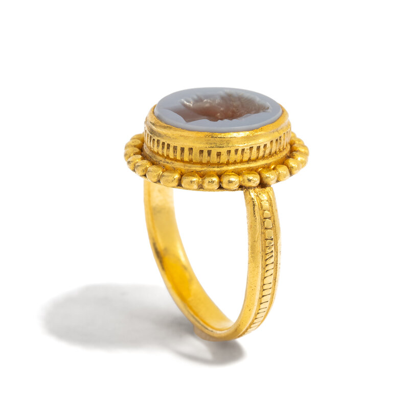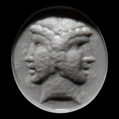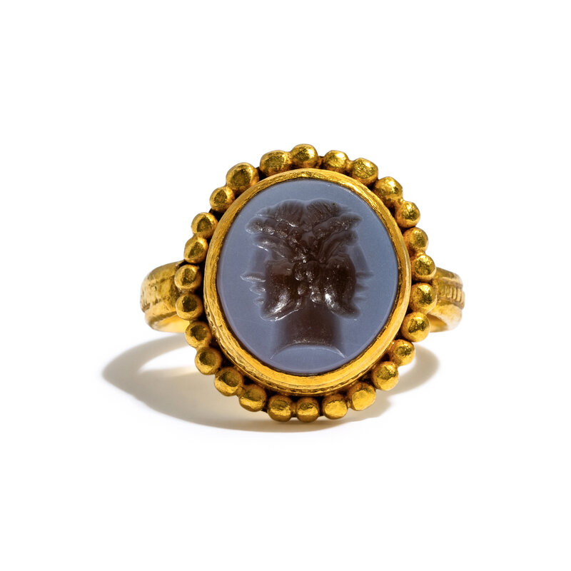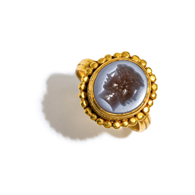 A Roman Gold and Nicolo Ring with the Head of Janus