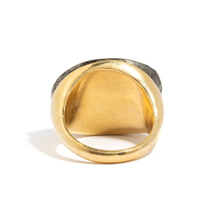 Height 2.4 cm (1 inch); Ring size 6 3/4; High karat gold; 22.6 grams.