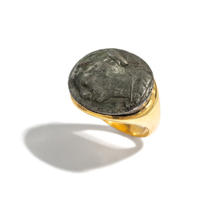 A Roman Bronze Bezel with a Female Portrait Head