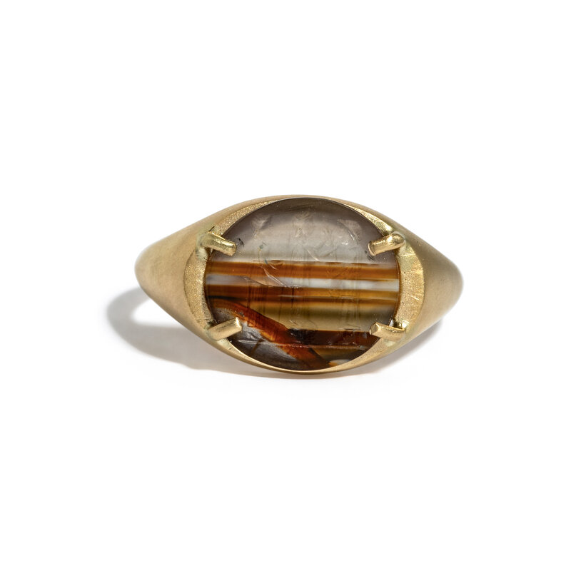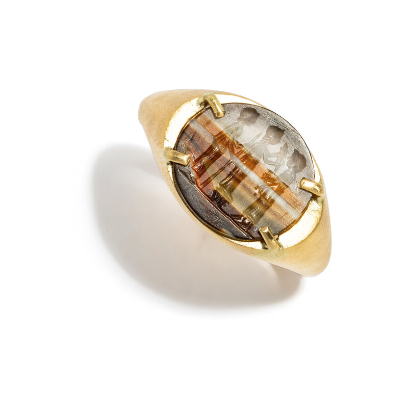 A Roman Banded Agate Ring Stone with an Offering Scene