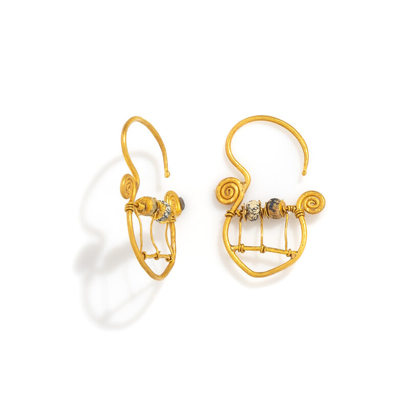 A Pair of Byzantine Gold and Glass Bead Earrings
