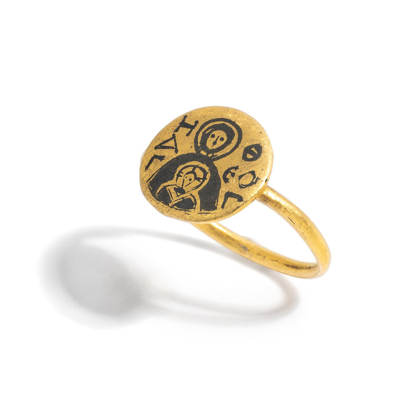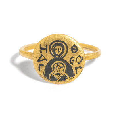 A Byzantine Gold and Niello Ring with Virgin and Child