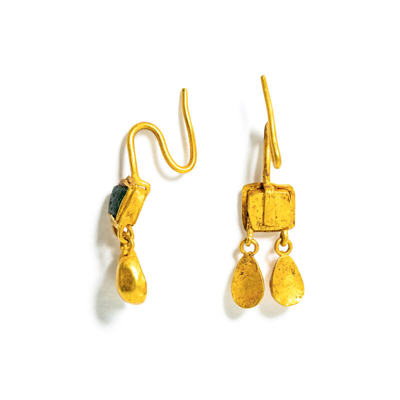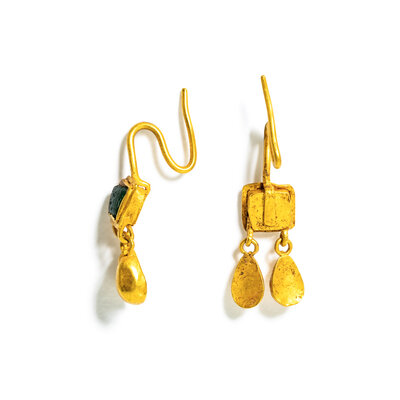 A Pair of Byzantine Gold and Emerald Earrings