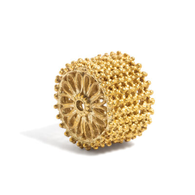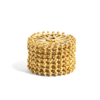 Diameter 1.5 cm (5/8); High karat gold; 3.94 grams.