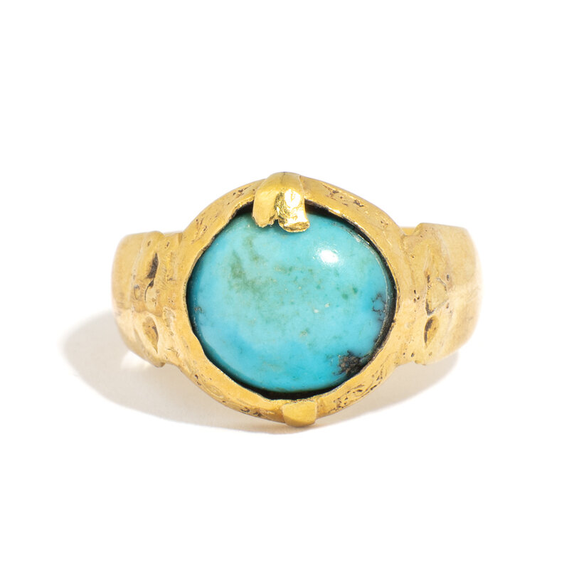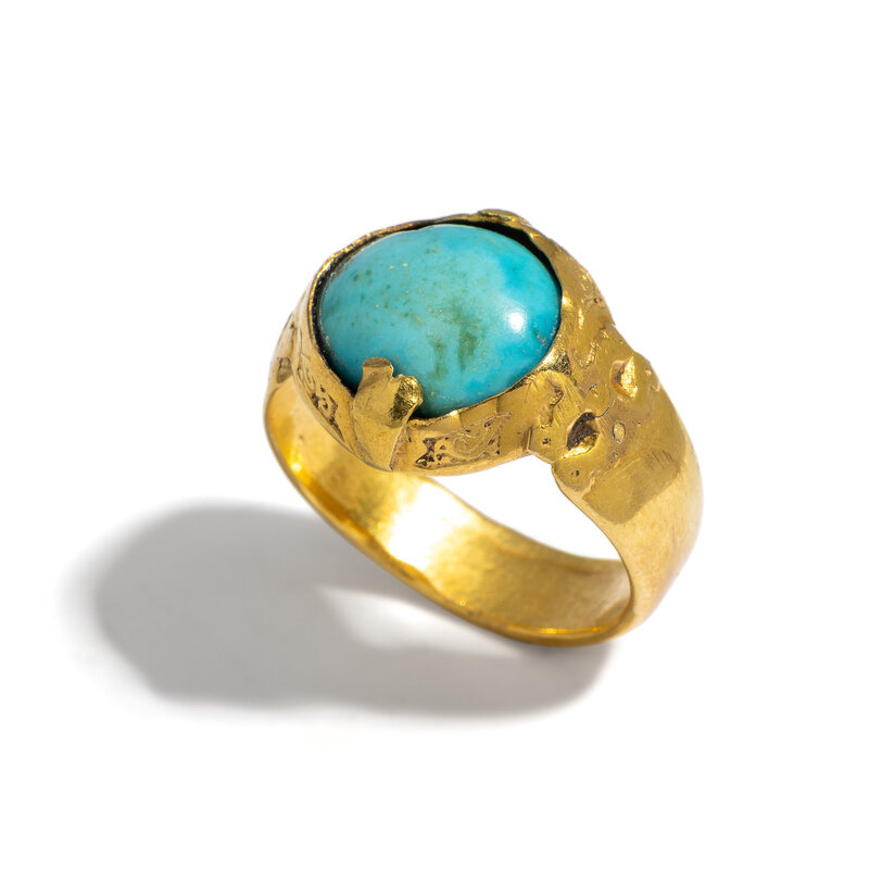 A Seljuk Gold and Turquoise Stirrup Ring