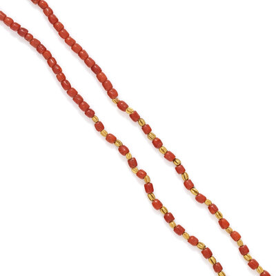 An Islamic Carnelian and Gold Bead Necklace