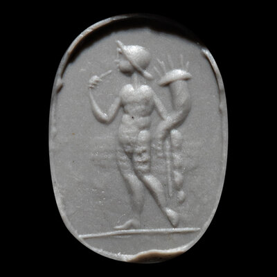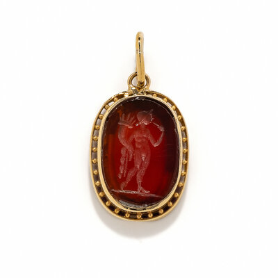 A Gold and Carnelian Pendant with the Goddess Fortuna
