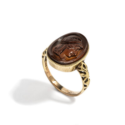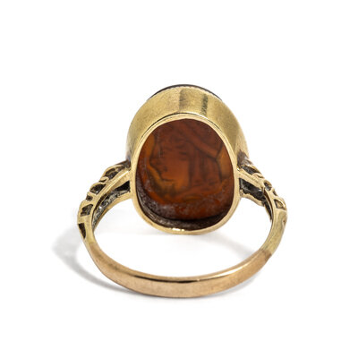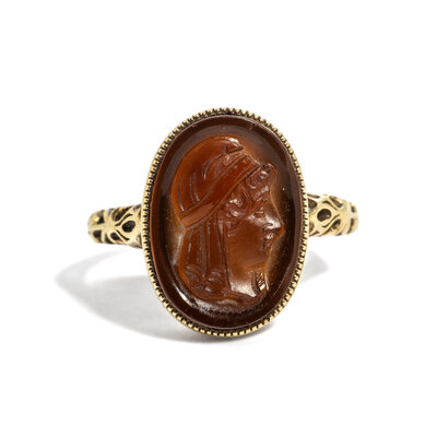 A Neoclassical Gold and Sard Finger Ring with Paris, The Prince of Troy