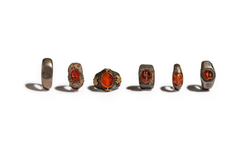 Five Bronze and Stone Finger Rings