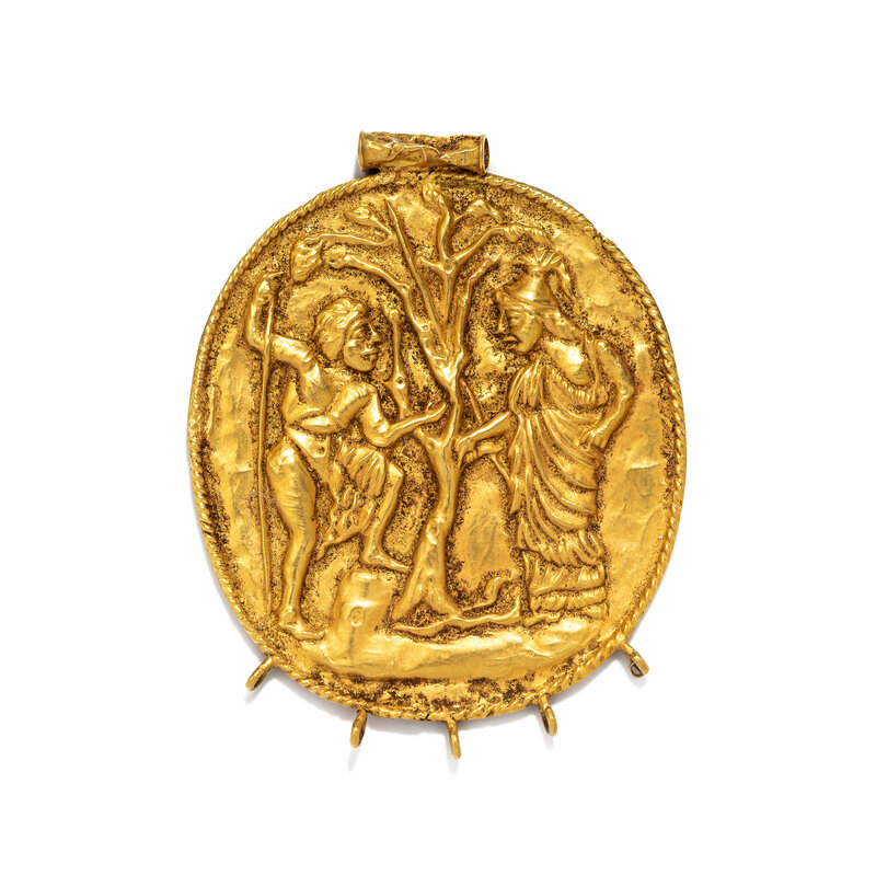 A Greco-Roman Style Gold Pendant with Jason and the Golden Fleece