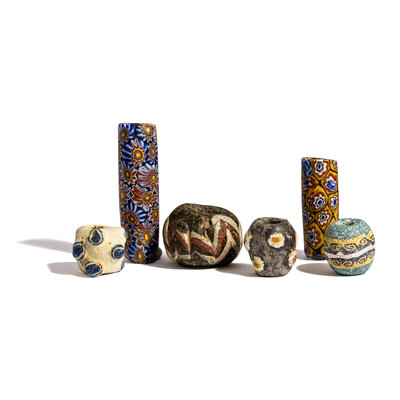 Four Phoenician and Two Venetian Millefiori Glass Beads