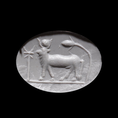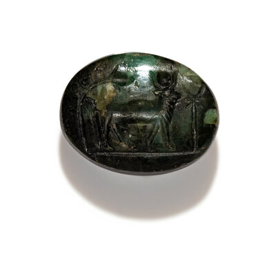 A Phoenician Green Serpentine Scaraboid with the Apis Bull