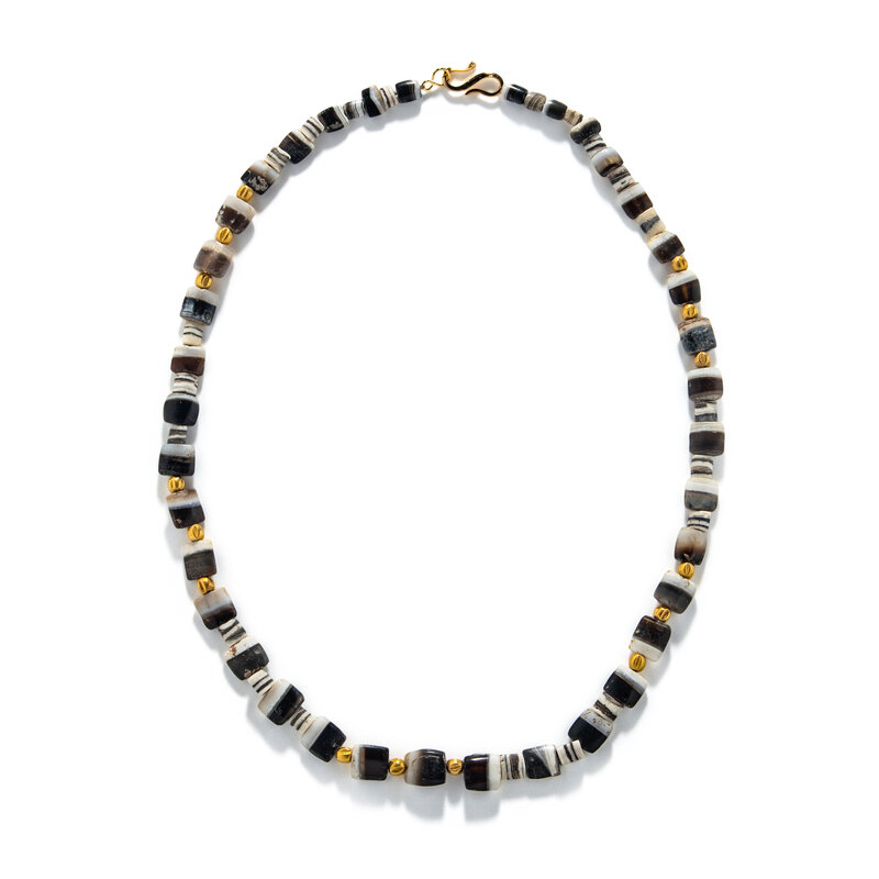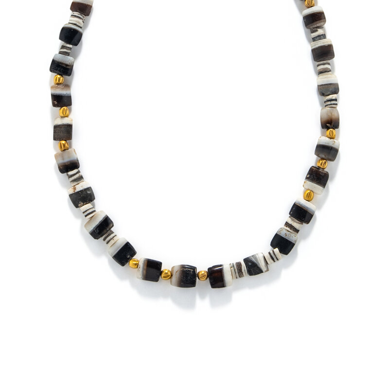 A Near Eastern Gold and Banded Agate Bead Necklace