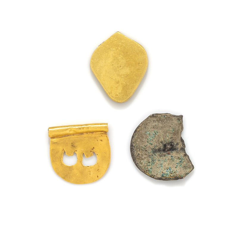 Height of largest 2.1 cm (7/8 inch); High karat gold; 7.9 grams.
