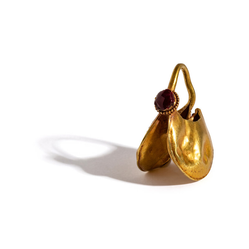 A Mesopotamian Gold and Glass Paste Earring