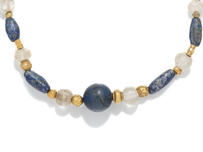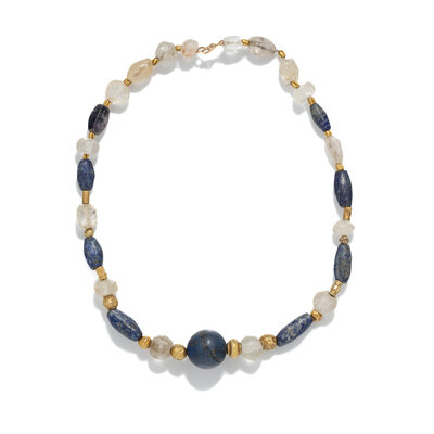 A Near Eastern Lapis Lazuli, Rock Crystal, and Gold Bead Necklace