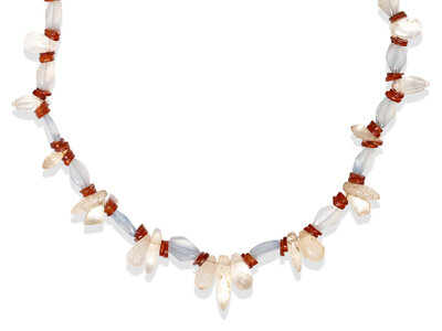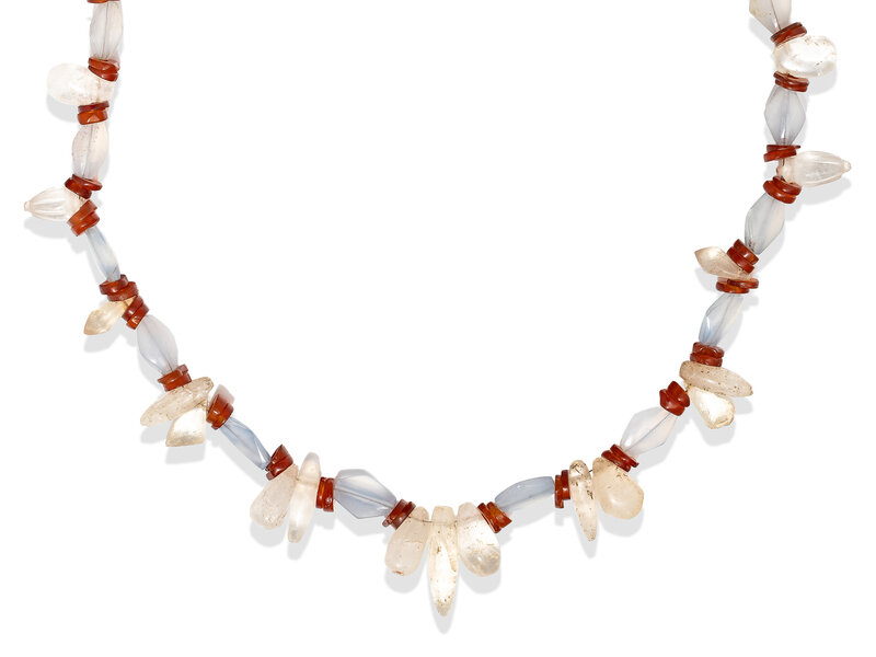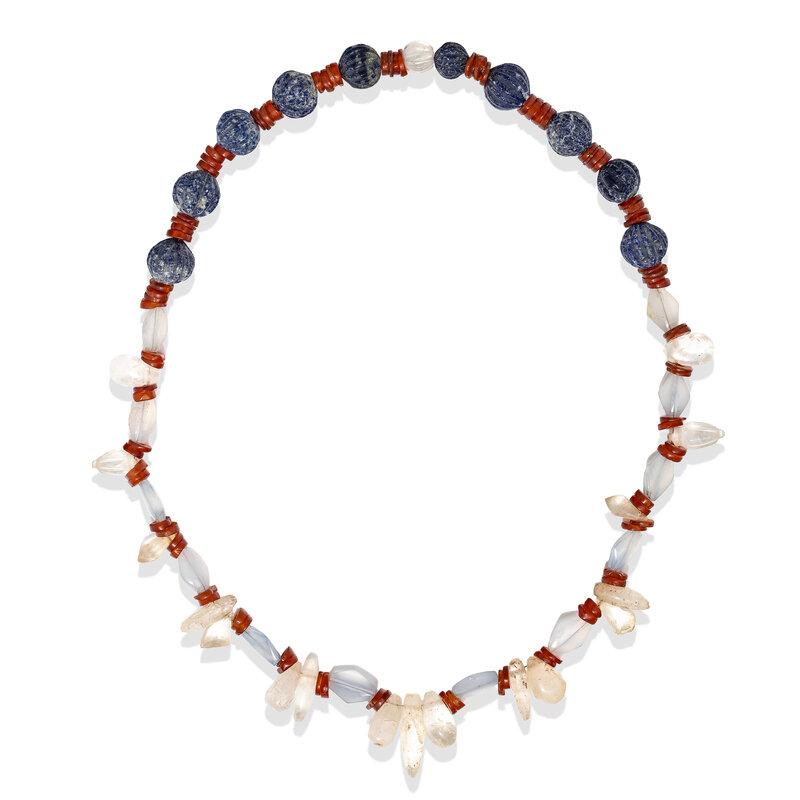 A Near Eastern Lapis Lazuli, Rock Crystal, and Carnelian Bead Necklace