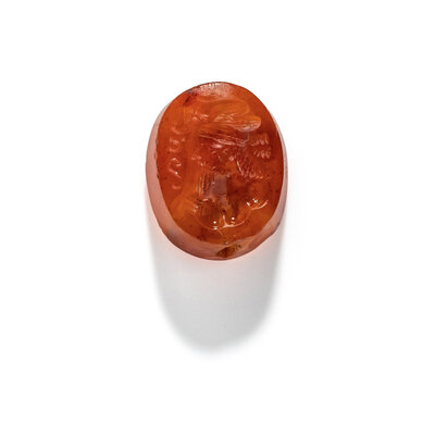 A Sasanian Carnelian Intaglio with a Royal Portrait Bust and Bird Headdress