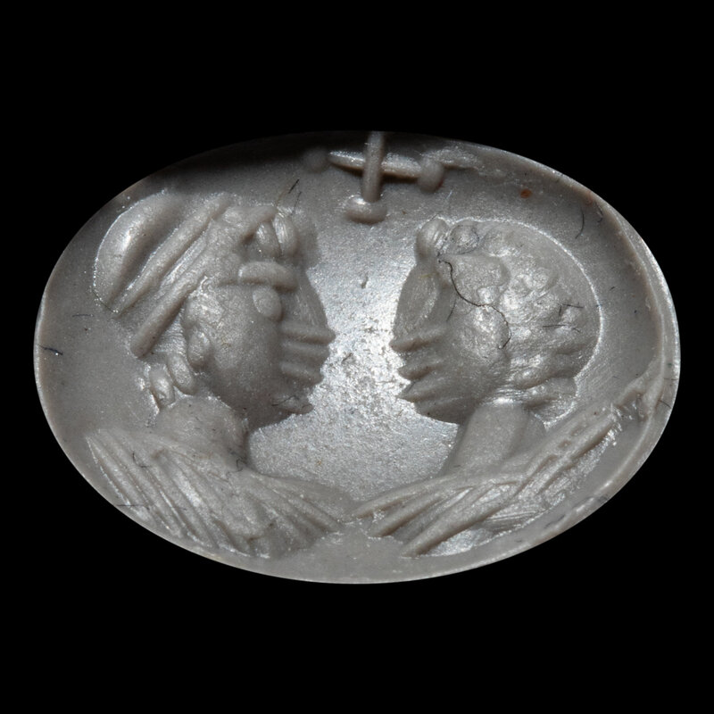 A Roman Amethyst Intaglio with Two Portrait Heads