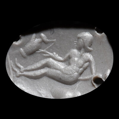A Roman Chalcedony Ring Stone with a Reclining Female Figure