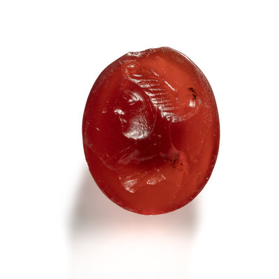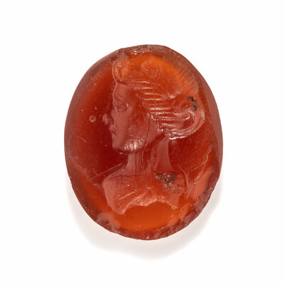 A Roman Carnelian Ring Stone with a Female Portrait Head