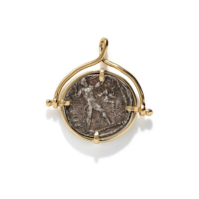 A Greek Silver Tetradrachm with Two Wrestlers