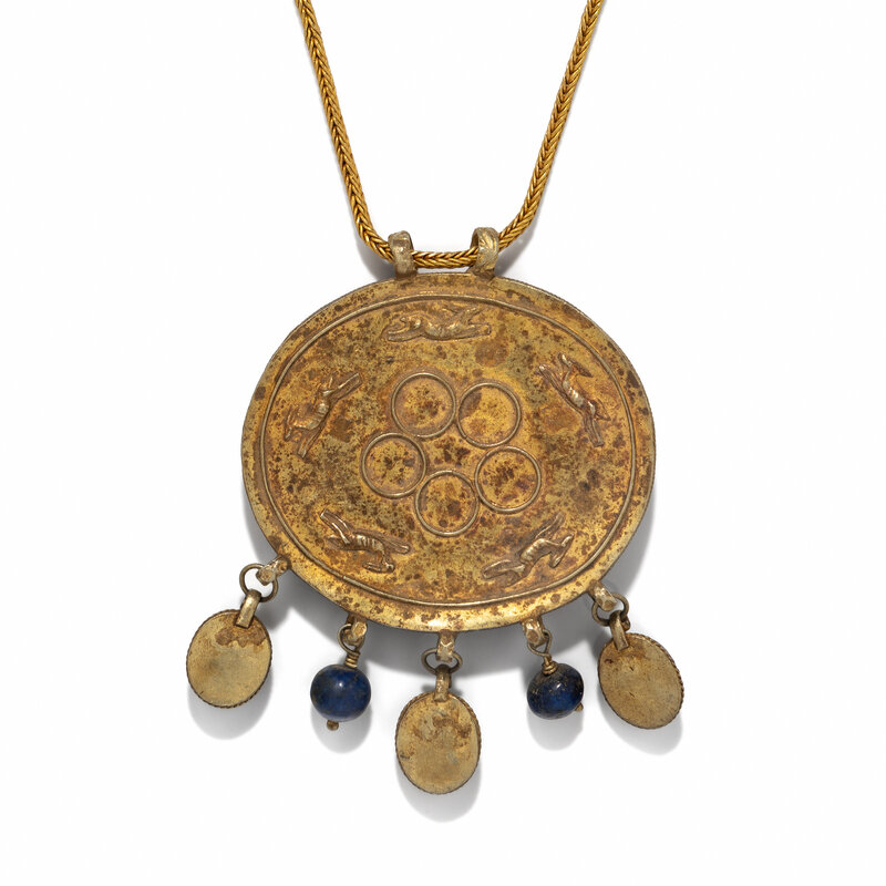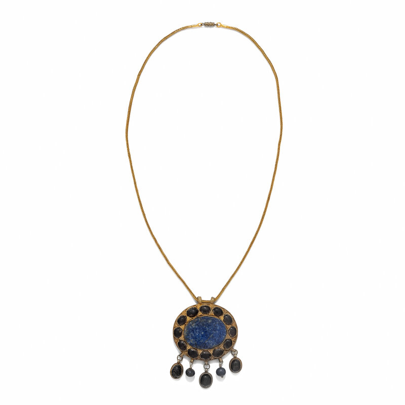 A Western Asiatic Gold and Lapis Lazuli Necklace