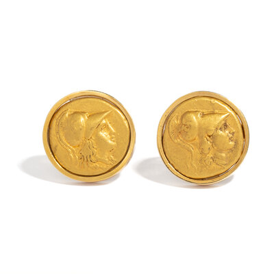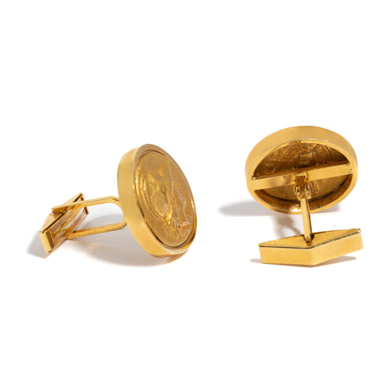 Length of cufflinks 2.3 cm (7/8 inch); High karat gold (coins); 27.49 grams.