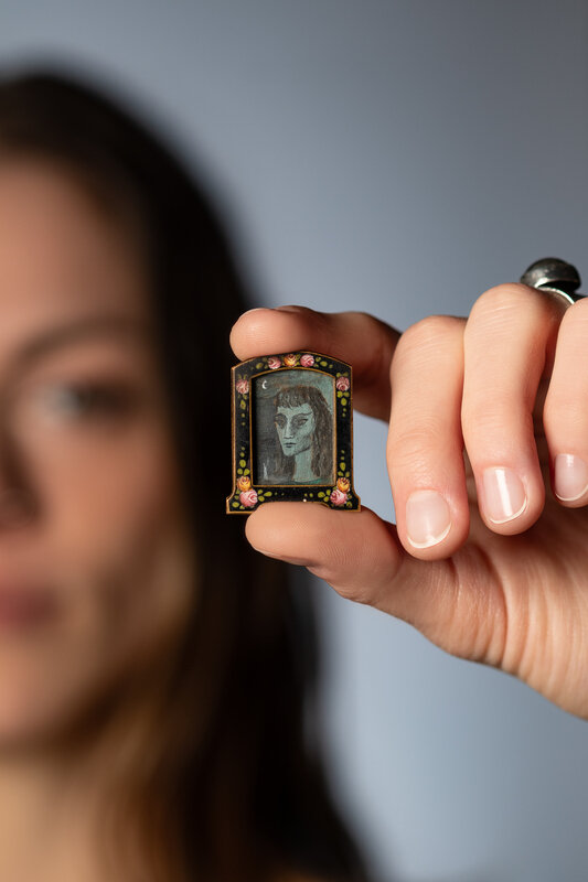 oil on masonite in locket frame
