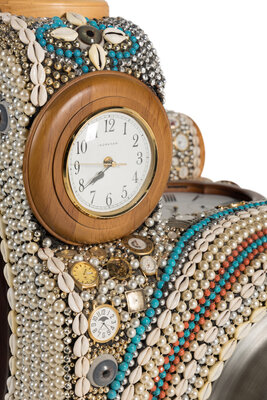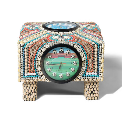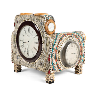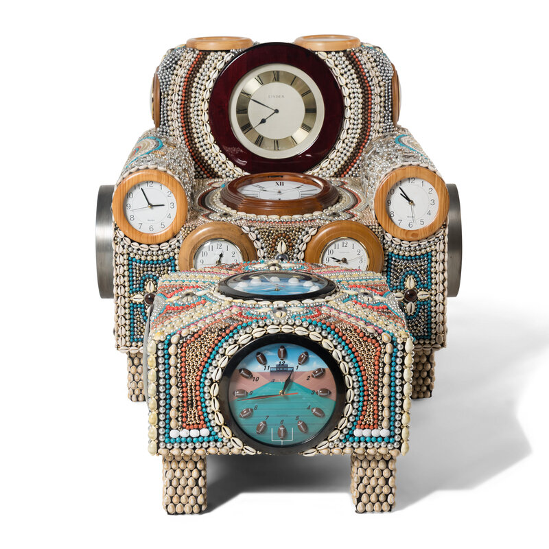 Chair: 37 3/4 x 42 x 32 inches; Ottoman: 18 1/2 x 24 x 24 inches.