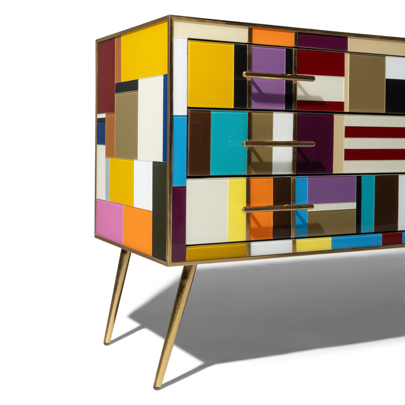 multi-colored glass, brass
