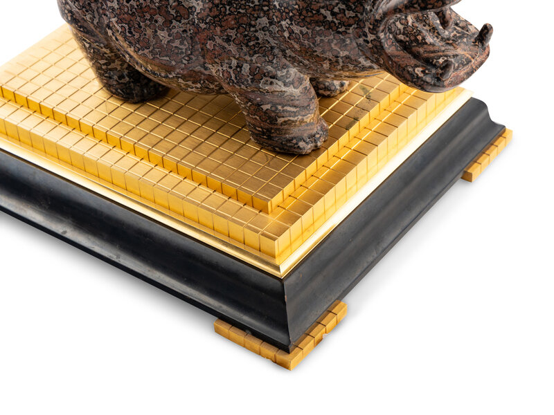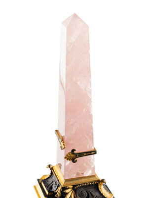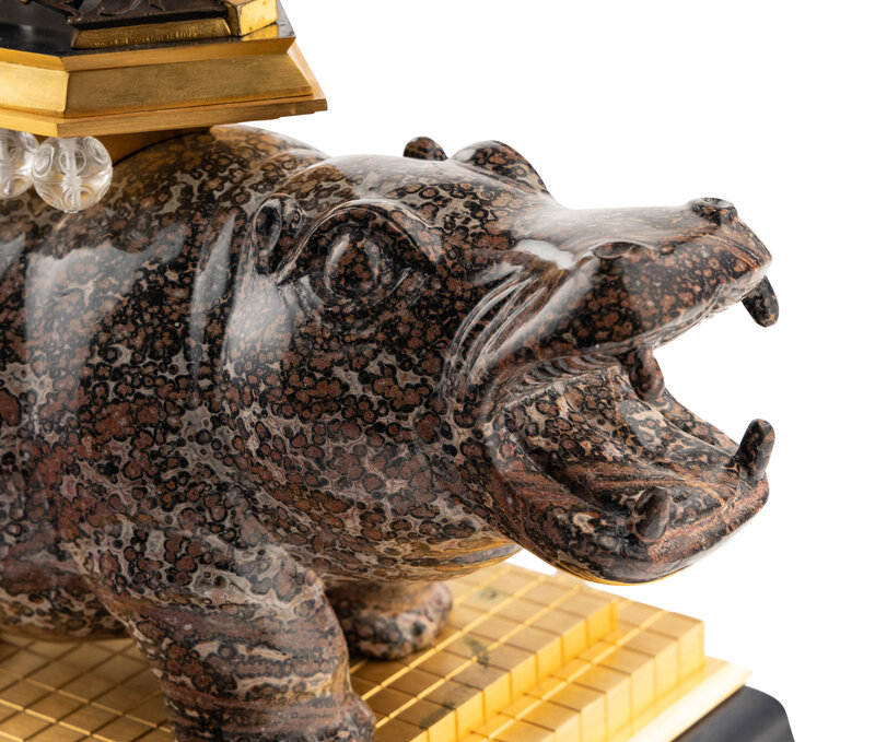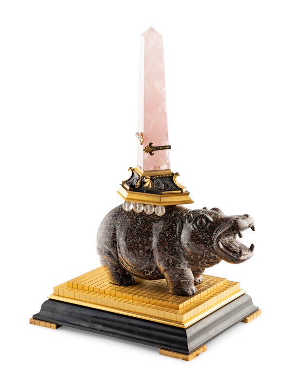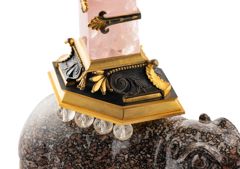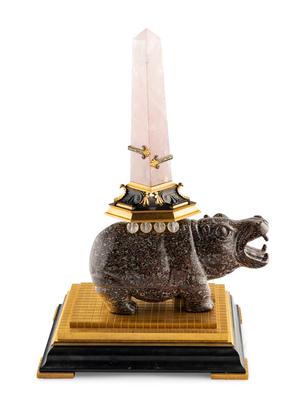 An Ormolu, Pink Quartz, Glass, Hardstone and Black Marble Hippopotamus Obelisk