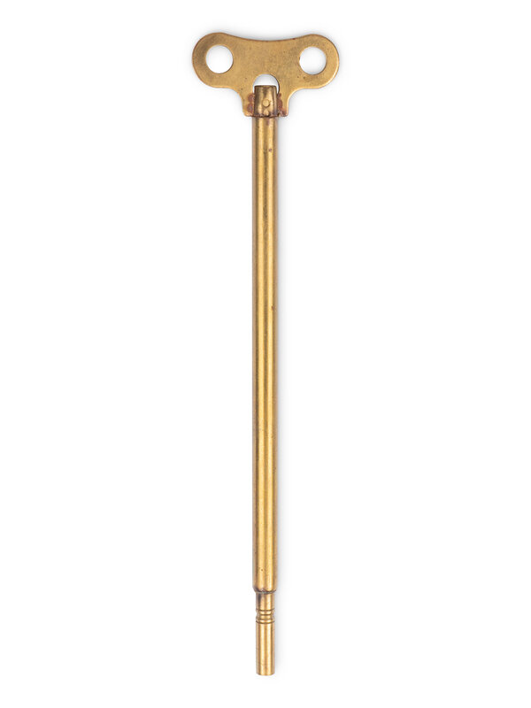 Roman chapters and blued hands, brass spring driven movement with platform lever escapement, half hour strike on a coiled gong and hour repeater button on top.