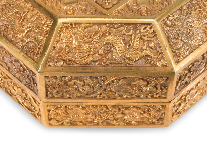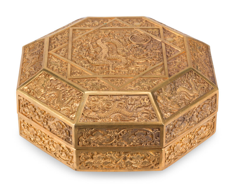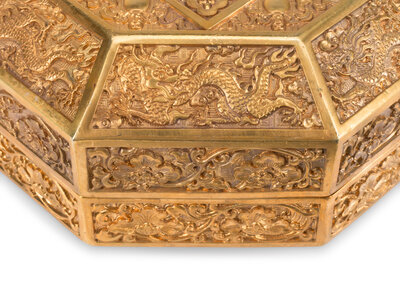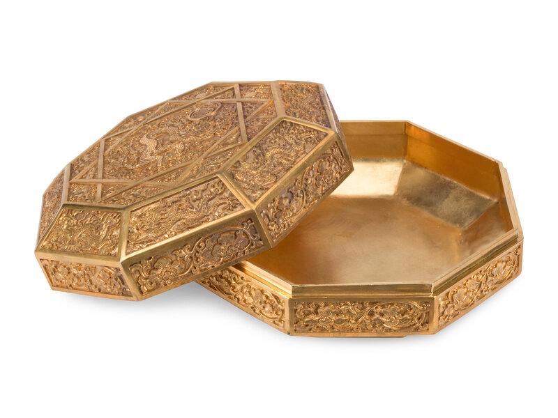 A Chinese Gilt Bronze Octagonal Box and Cover