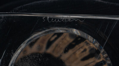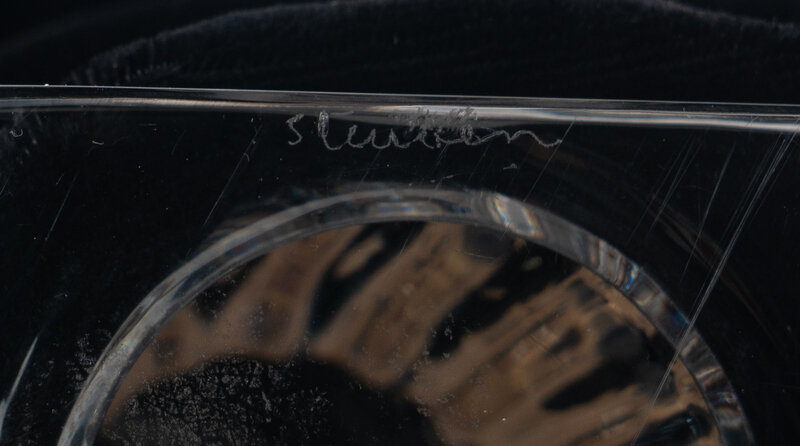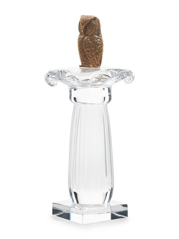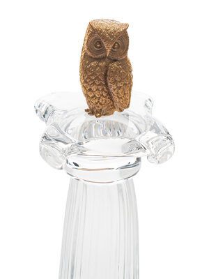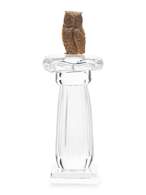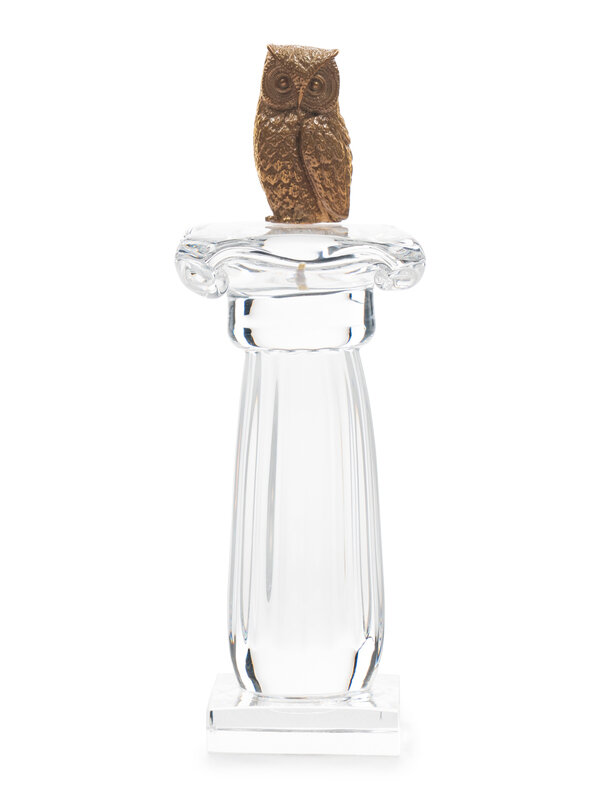 A Steuben Glass and 18 Karat Gold Column of the Owl Sculpture