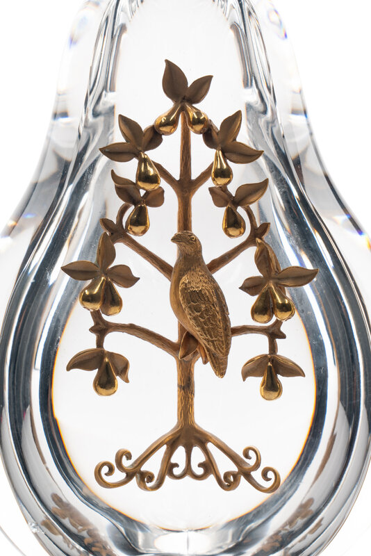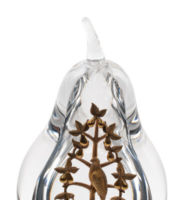 A Steuben Glass and 18 Karat Gold Partridge in a Pear Tree Sculpture