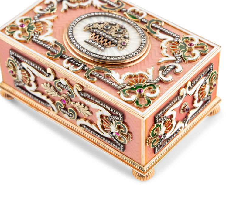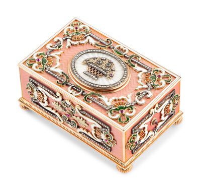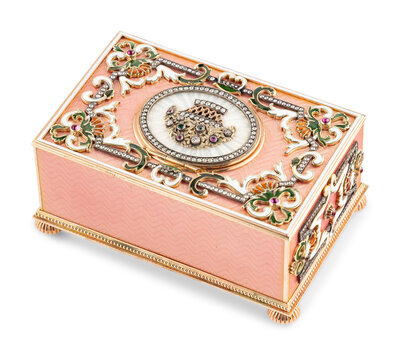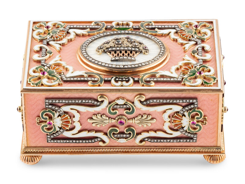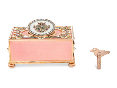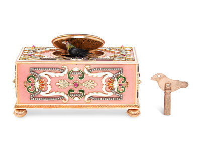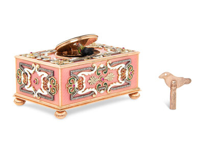 A Continental Gold, Enamel and Jewel-Inset Singing Bird Automaton Box