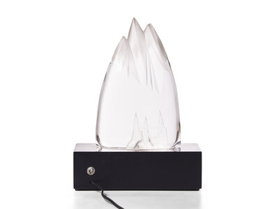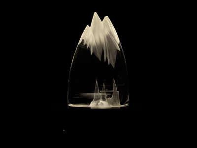 representing the first successful sailing of a nuclear submarine, Nautilus, beneath the North Pole, on August 3, 1958; etch-signed to base, "Steuben"; accompanied by custom electrified light box stand.