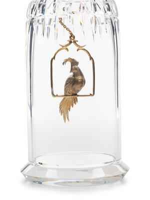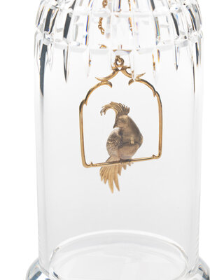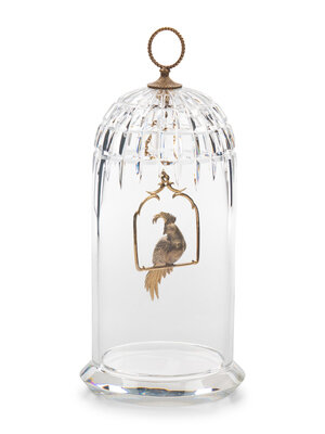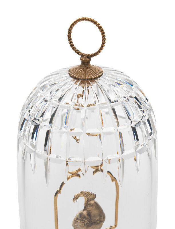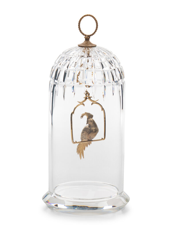 A Steuben Cut Glass and 18 Karat Gold Bird Cage Sculpture